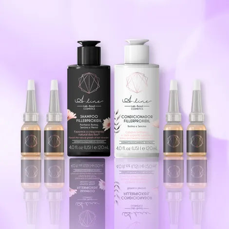 The package contains: 01 Shampoo-120mL, 01 Conditioner-120ml, 04 Ampoules-6mL/unit]. Do not use this product if you have wounds or injured skin. The effectiveness of this medicine depends on the functional capacity of the patient. The Fillerproxidil® Ampoule is transparent to a slightly yellowish solution.